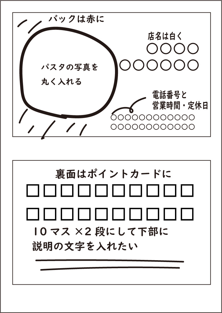 入れる文字、大きさや場所の指示なども書き入れてください